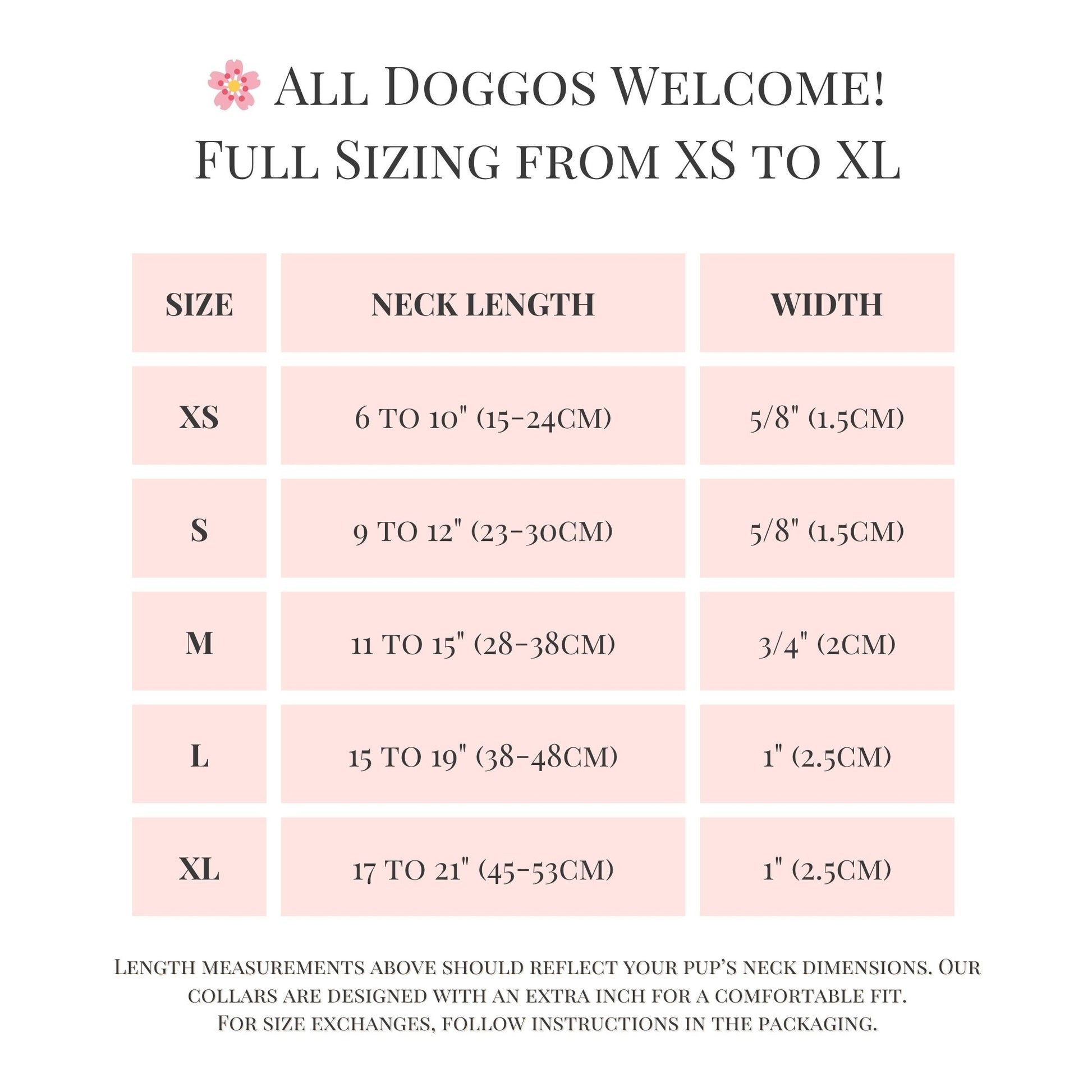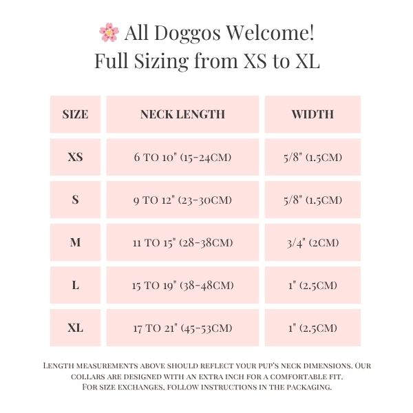 Ensure a perfect fit! Measure your dog's neck snugly and refer to our detailed sizing chart in the image carousel. Our collars are made for comfort, but choosing the right size initially is key to your pup's happiness.