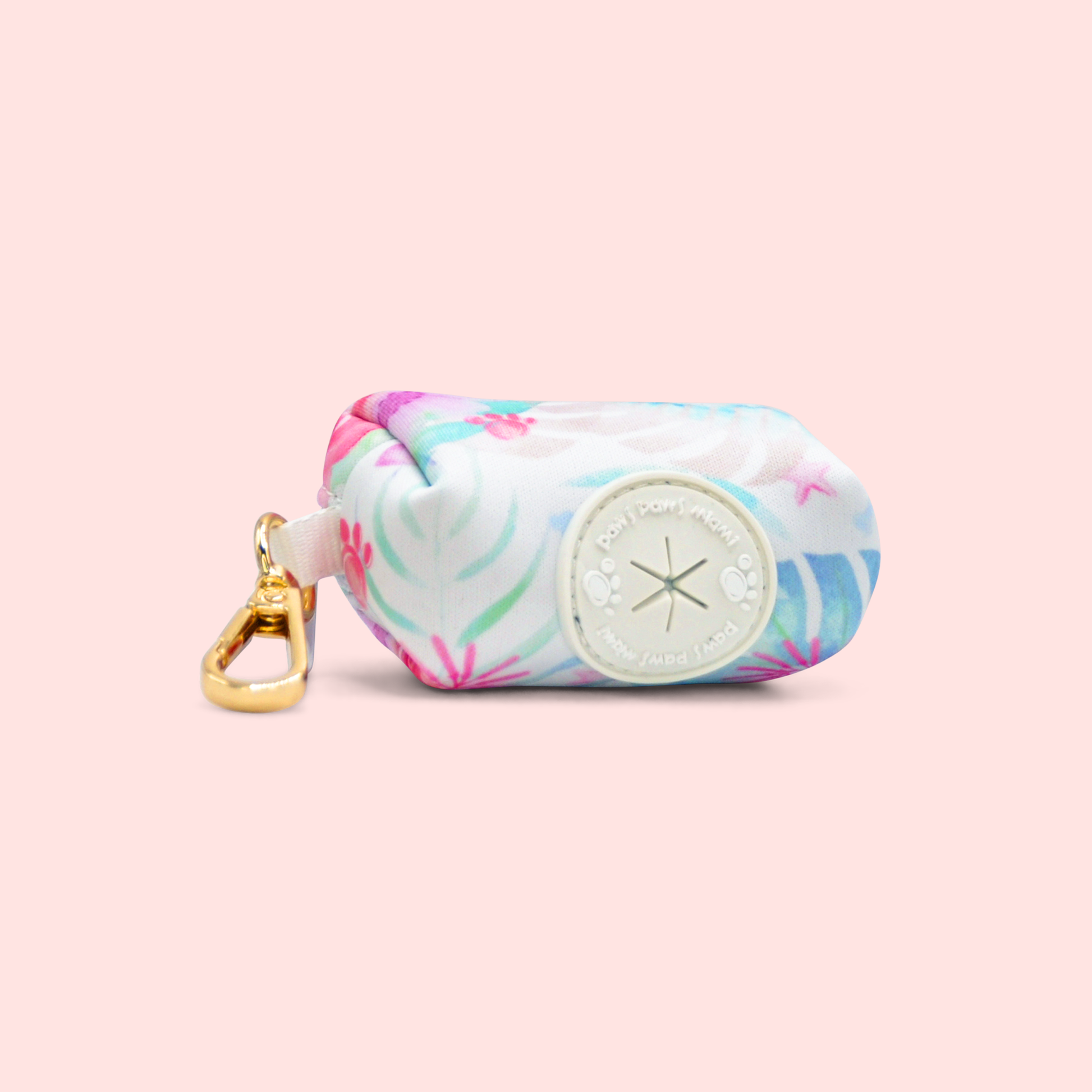 The Miami Muse Golden Hour Waste Bag Holder brings sunset vibes to every walk. This bold, compact pouch clips to your leash, holds a standard roll of bags, and matches perfectly with your Paws Paws Miami Golden Hour harness and collar.